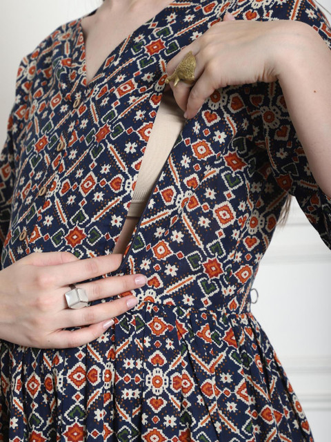 Maternity Gown Fabric : Cotton, Maternity Gown Color : Navy Blue & Red