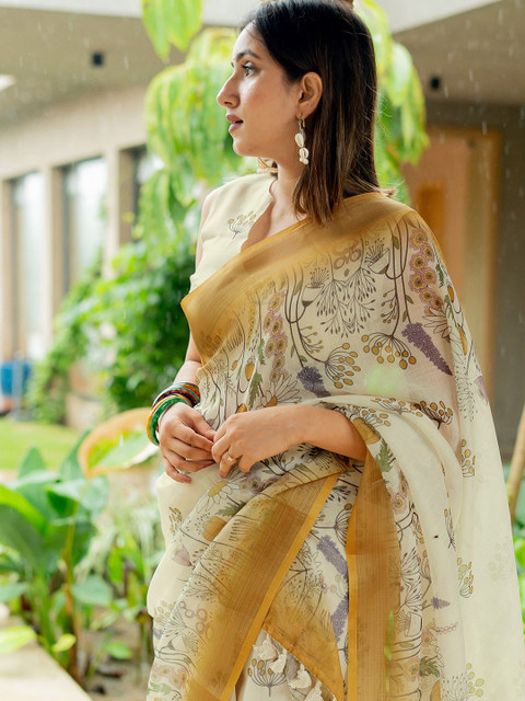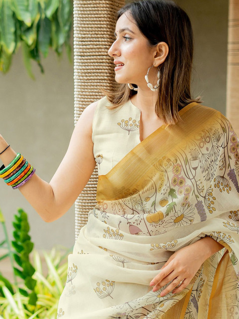 - Floral printed saree with printed border