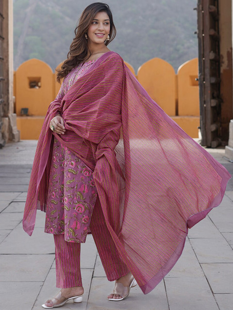 My one of the best purchase on myntra till date.😊 Super soft cotton fabric and comfy to wear, beautiful color, it is a very unique kurta set love the lining pattern on dupatta. 👌🌼
