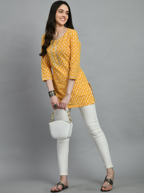 The colour of the kurti is dull. Not bright and not looking new only ur model pics look attractive. We have to think alot now before buying ur products and refer reviews, plus they are priced to much. Myntra used to give quality products before but now it’s loosing its charm.