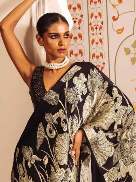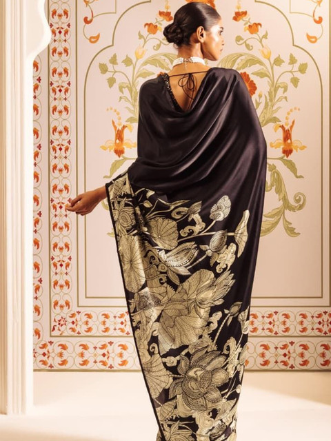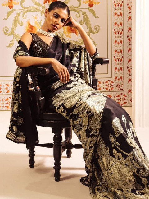 Saree fabric: 100% Japan SatinBlouse fabric: SatinDry Clean