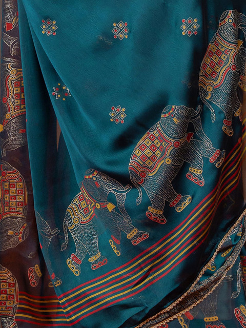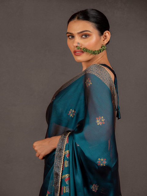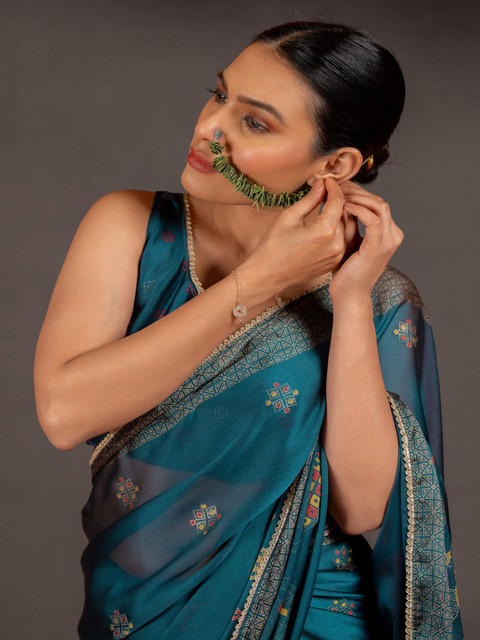 The blouse worn by the model might be for modelling purpose only. Check the image of the blouse piece to understand how the actual blouse piece looks like.