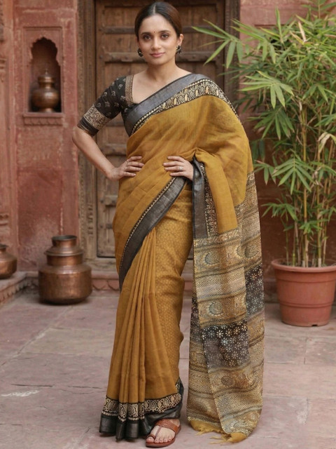 The blouse worn by the model might be for modelling purpose only. Check the image of the blouse piece to understand how the actual blouse piece looks like.