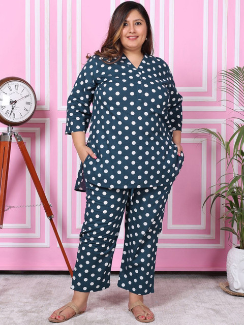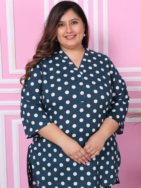 Blue & white printed tunic, has V- neck, Three quarter sleeves with button closure and straight hem