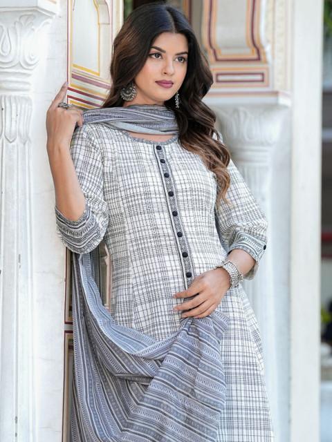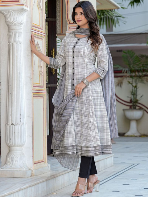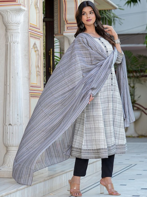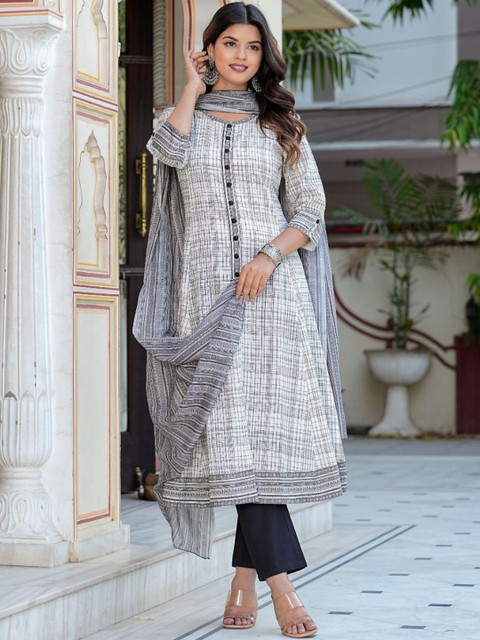 Off white printed Kurta with dupatta