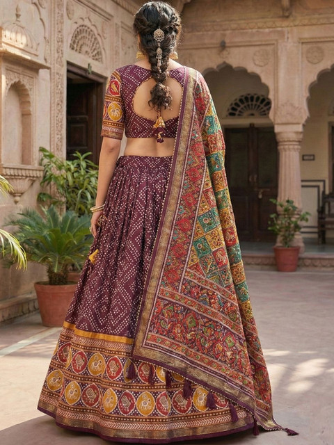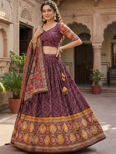 Purple printed lehenga choli with dupatta, has foil print technique and gotta patti