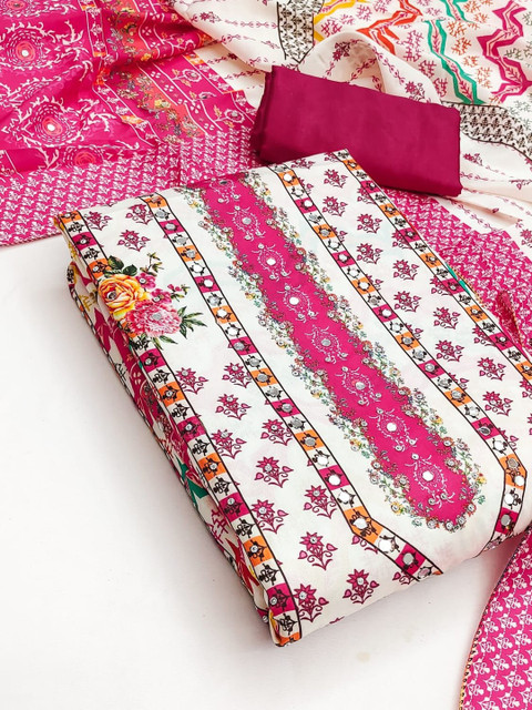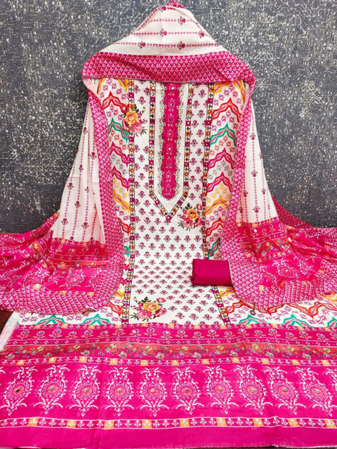 White printed dupatta, has Disclaimer: Images are for referral purposes only. The actual product is unstitched