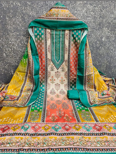 Multicoloured printed unstitched dress material