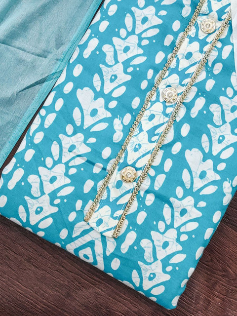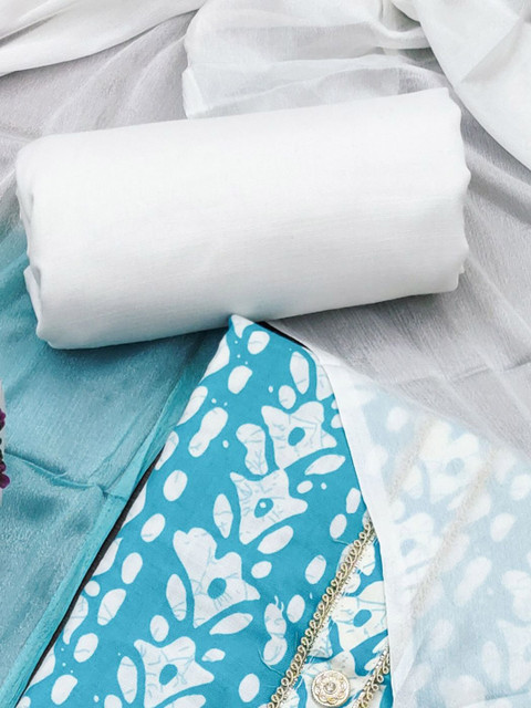 Blue and white printed unstitched dress material