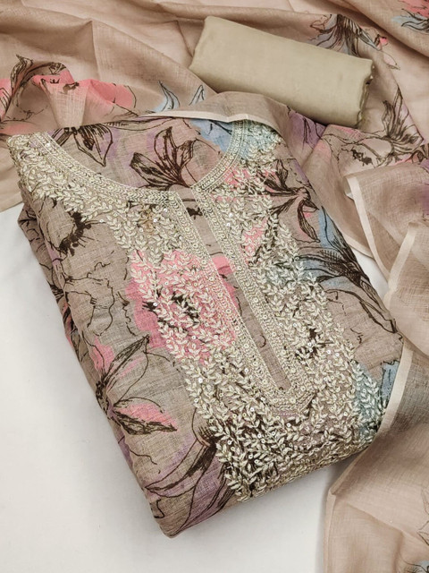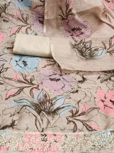 Beige printed unstitched dress material