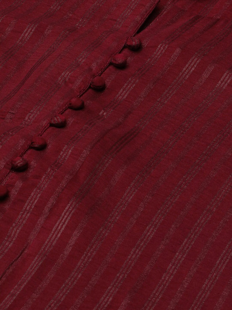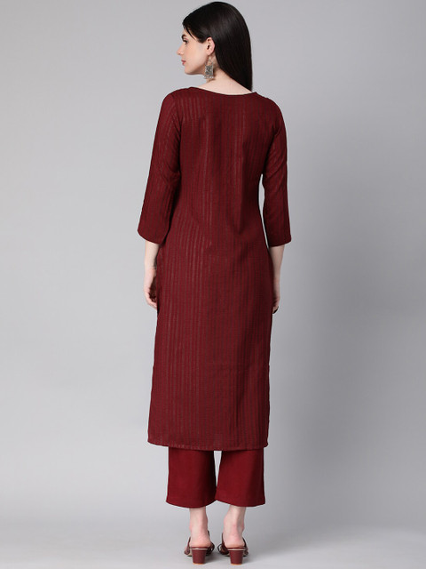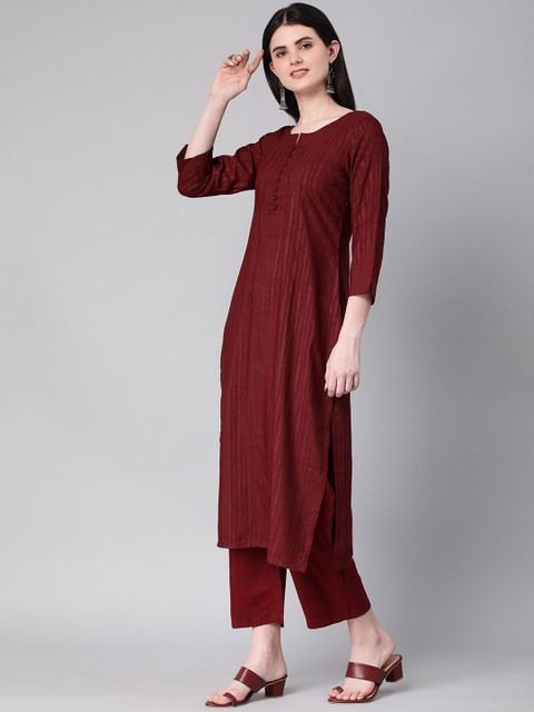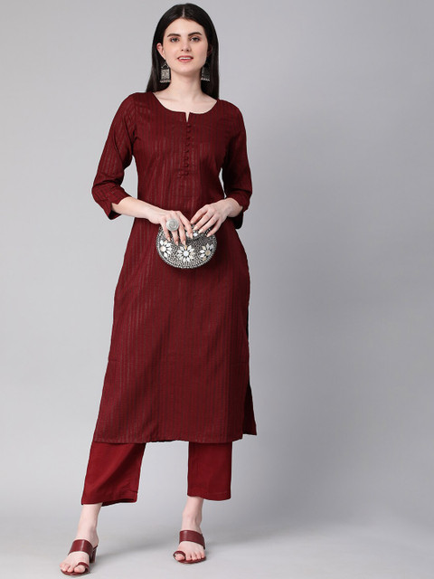 3 reviews for KALINI Striped Round Neck Three-Quarter Sleeves Thread Work Kurta with Trousers