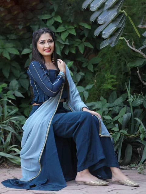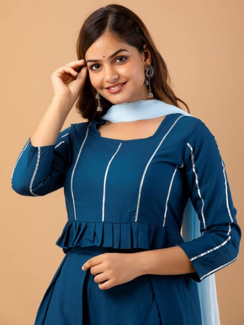 This ethnic co-ords set consists of top & palazzo with dupatta