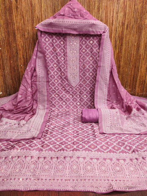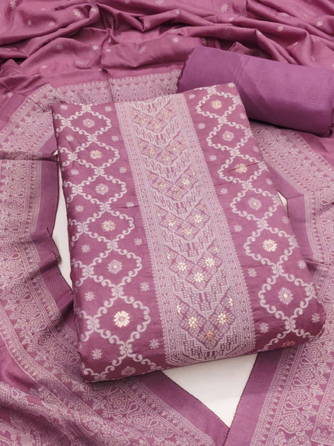 Purple woven design unstitched dress material