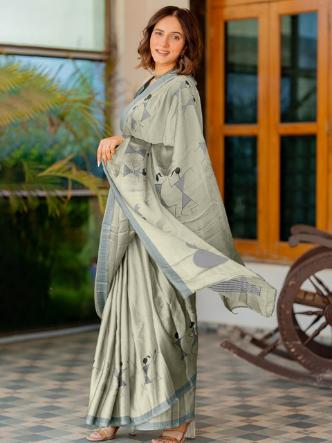 - Warli printed saree with no borderÂ