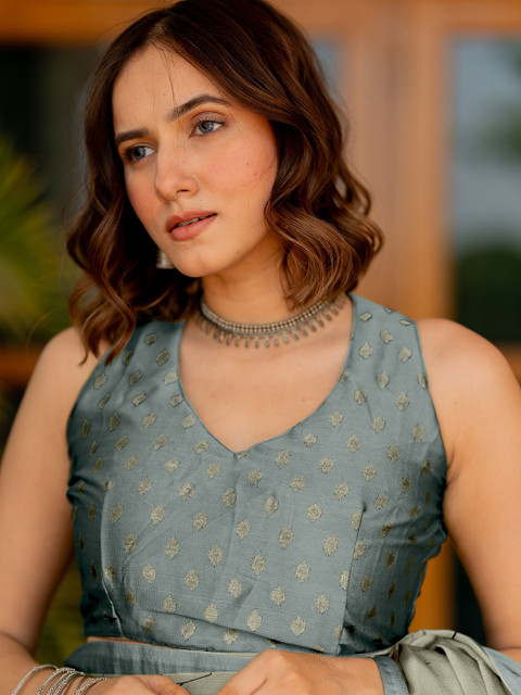 The blouse worn by the model might be for modelling purpose only. Check the image of the blouse piece to understand how the actual blouse piece looks like.