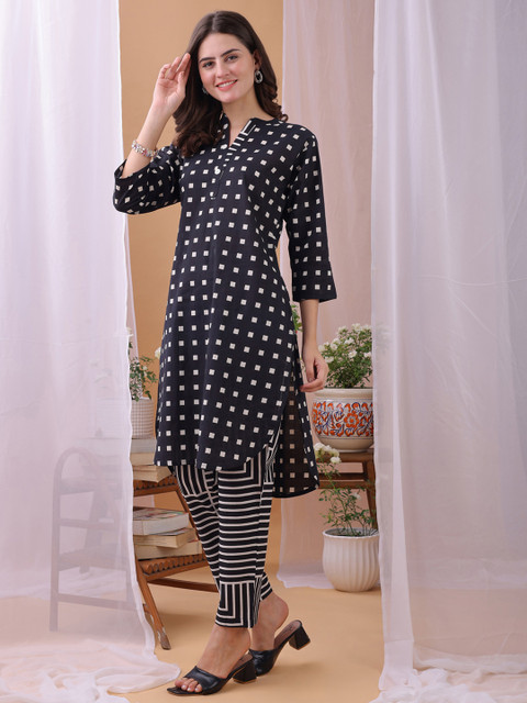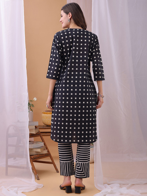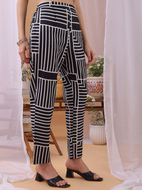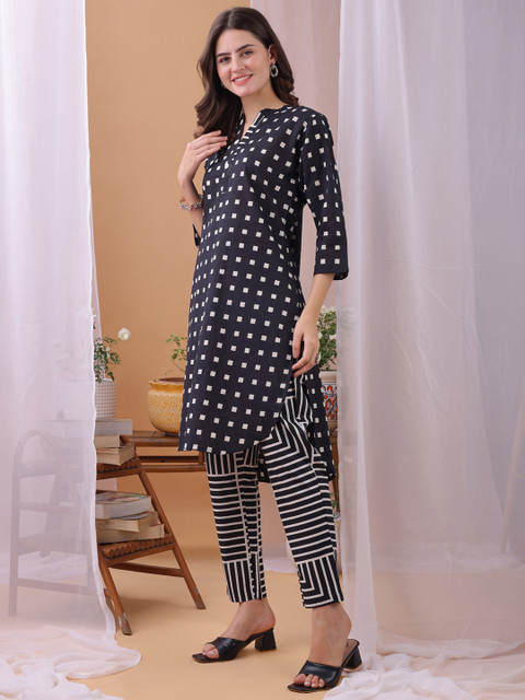 Black & white printed tunic, has v-neck & three quarter sleeves