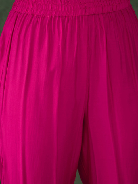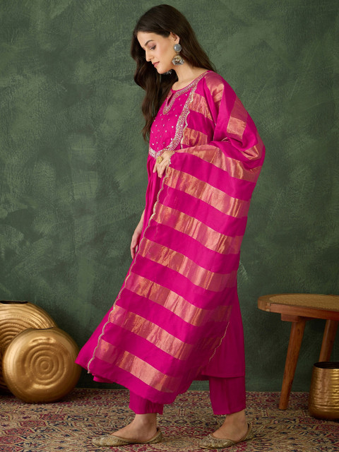 Women’s Chanderi Embroidered Flared Kurta with Pant And Dupatta Sets