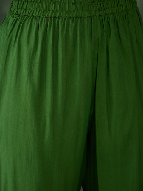 Women’s Chanderi Embroidered Flared Kurta with Pant And Dupatta Sets