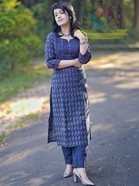 Navy blue woven design Kurta with Trousers