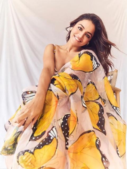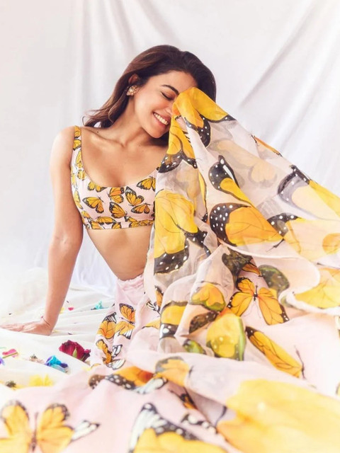 Yellow printed unstitched blouse.