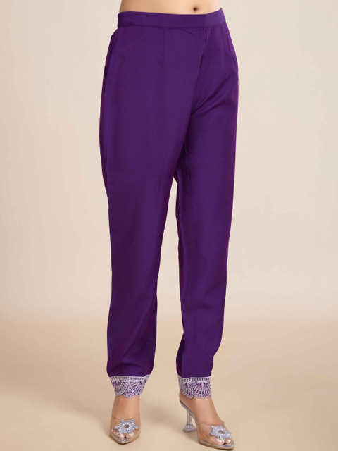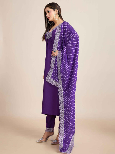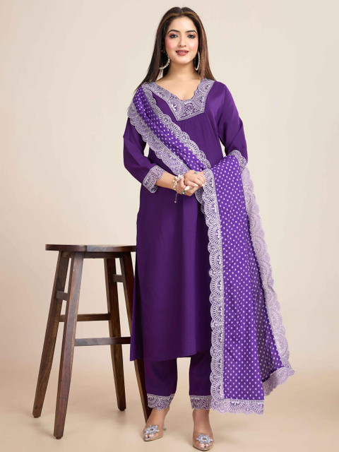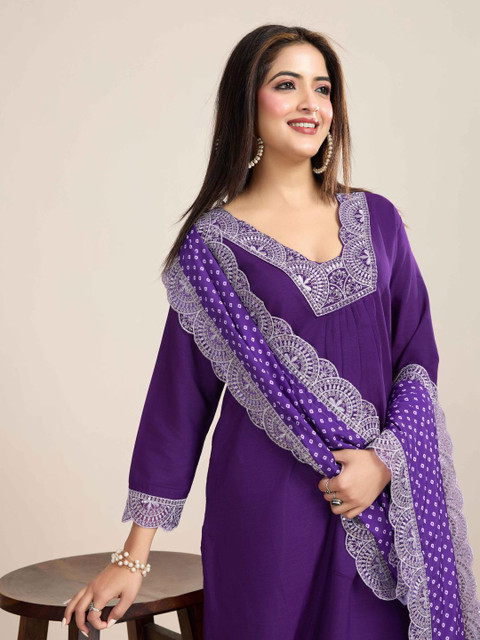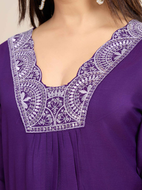 Women’s Viscose Embroidered Flared Kurta with Pant And Dupatta Sets