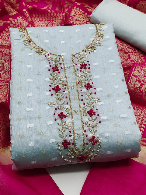 Woven design unstitched dress material