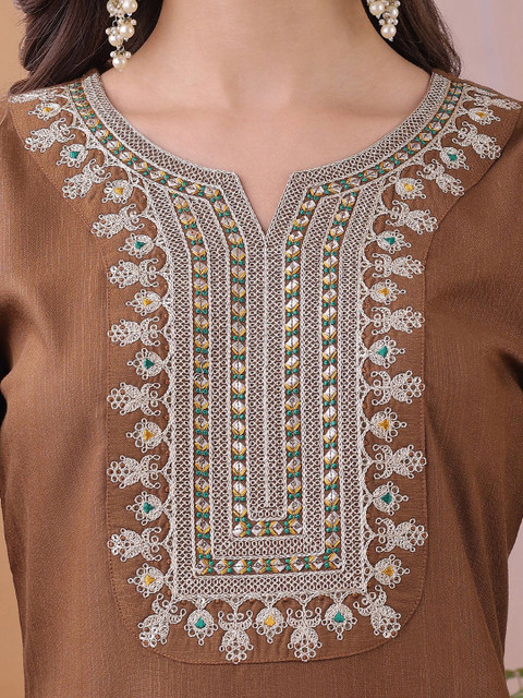 This women’s floral embroidery kurta and trouser set has a classy and feminine design. The floral embroidery is finely done and enhances the overall look. The fabric is soft and comfortable for all-day wear. The fitting is good, and the set is perfect for casual outings, office wear, or small festive occasions.”