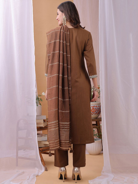 KALINI Yoke Design Sequinned Straight Kurta With Trousers And Dupatta