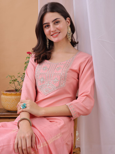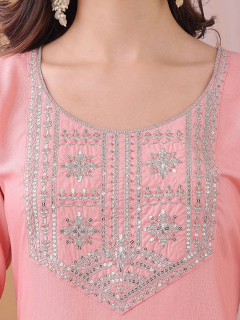 The material is very soft and comfortable on the skin. The embroidery on the yoke looks elegant and classy. Perfect for festive and family functions. The color is subtle and looks very graceful when worn. Worth the price!