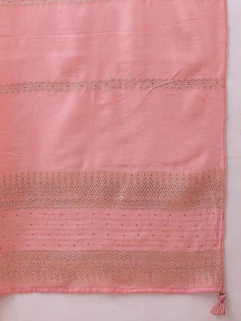 Peach, gold-toned embroidered kurta with trousers and dupatta