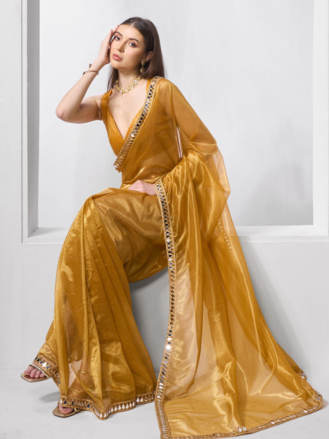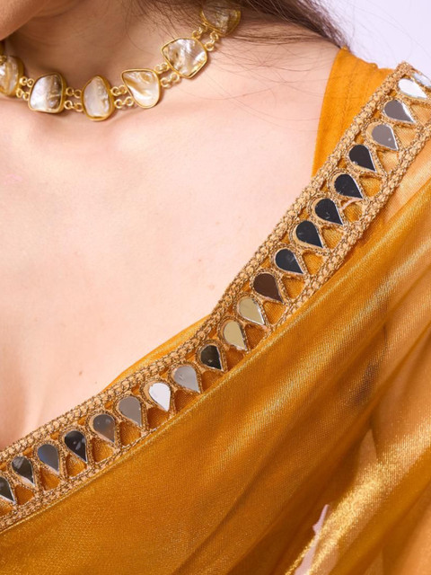 The blouse worn by the model might be for modelling purpose only. Check the image of the blouse piece to understand how the actual blouse piece looks like.