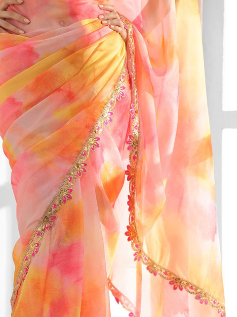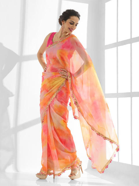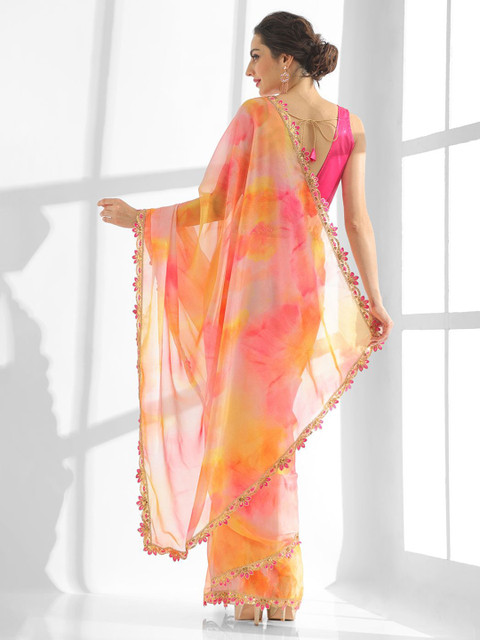 The blouse worn by the model might be for modelling purpose only. Check the image of the blouse piece to understand how the actual blouse piece looks like.