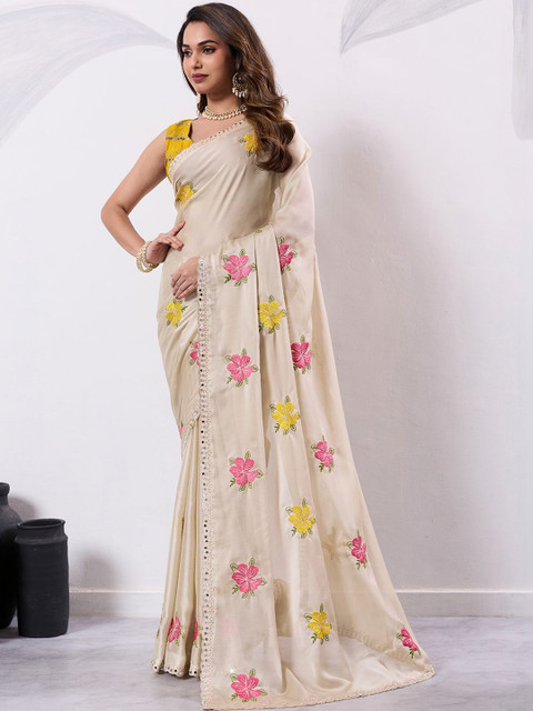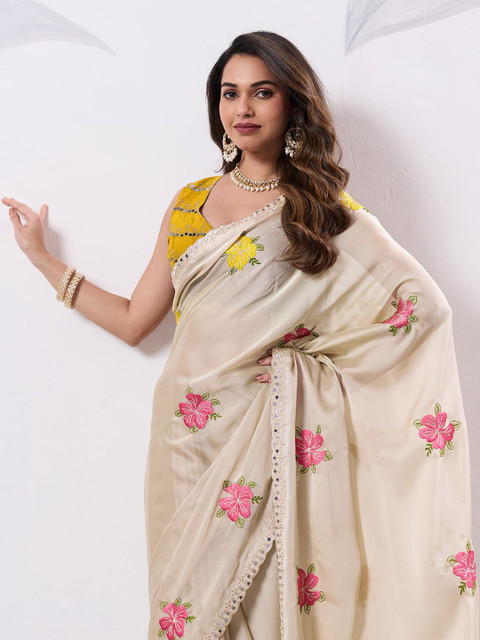 - Floral embellished saree with embellished border border