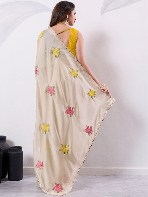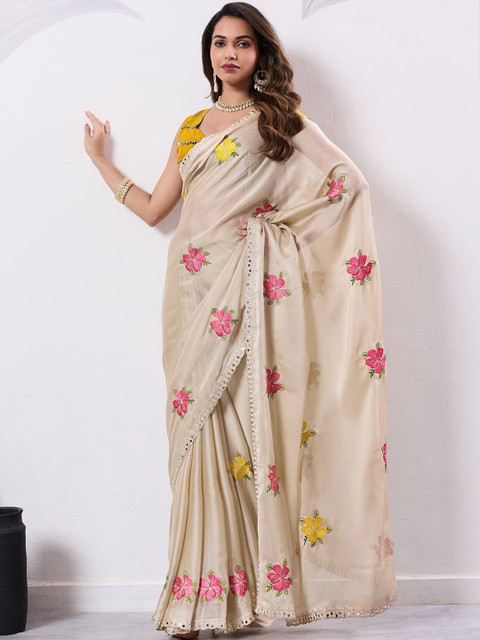 - Cream-coloured and beige saree