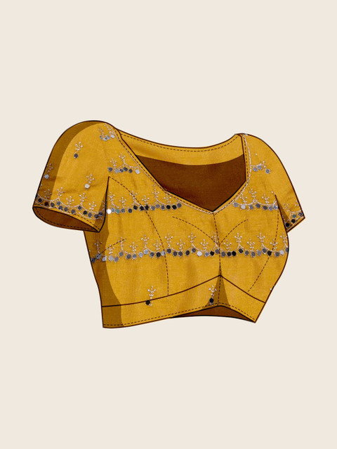 The blouse worn by the model might be for modelling purpose only. Check the image of the blouse piece to understand how the actual blouse piece looks like.