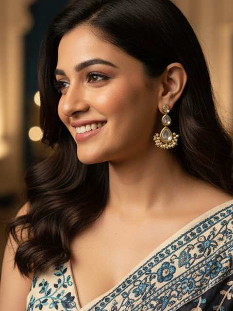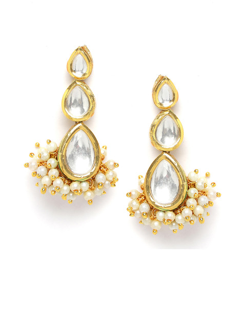 Gold-toned drop earrings, gold-plated, has kundan