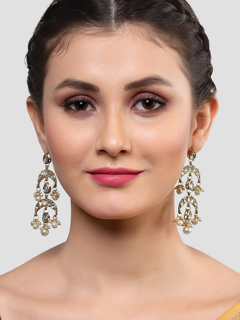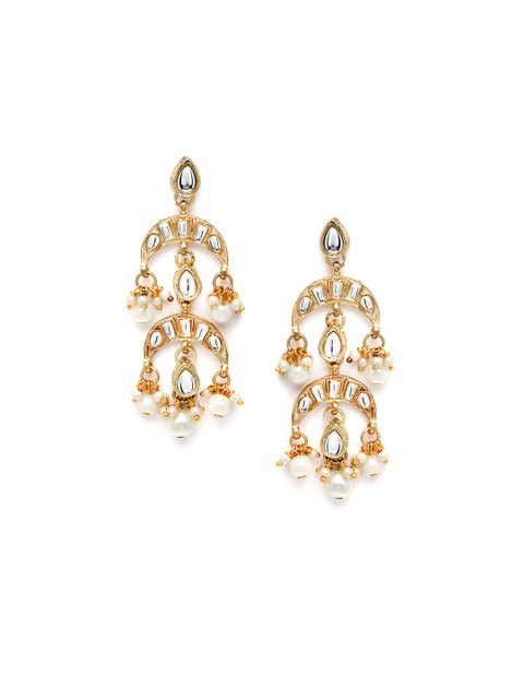 Gold-toned and white contemporary drop earrings, gold-plated, has kundan