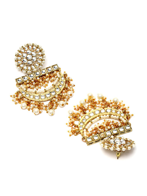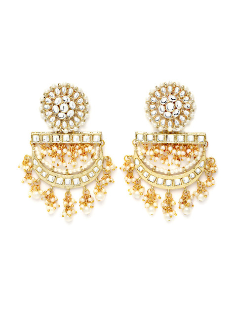 Gold-toned contemporary drop earrings, gold-plated, has kundan