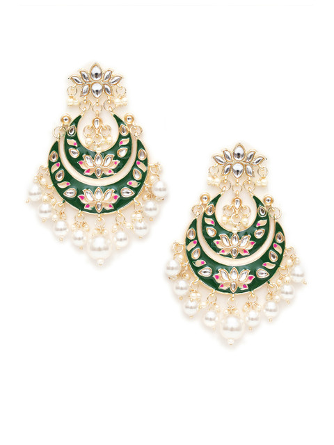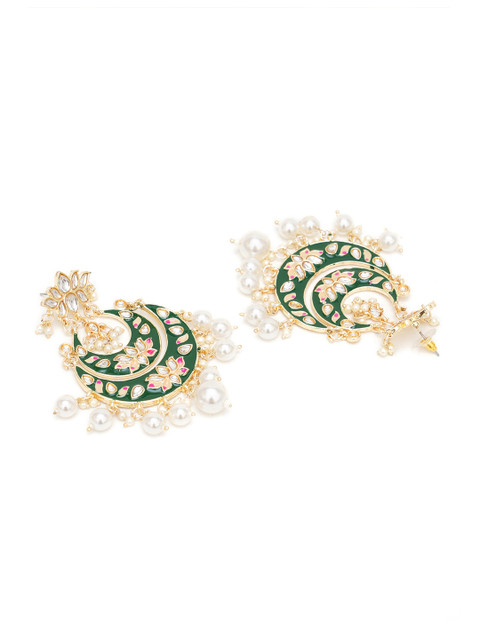 KARATCART Green & White Gold-Plated Classic Chandbalis Earrings