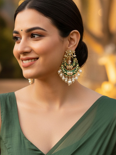 3 reviews for KARATCART Green & White Gold-Plated Classic Chandbalis Earrings