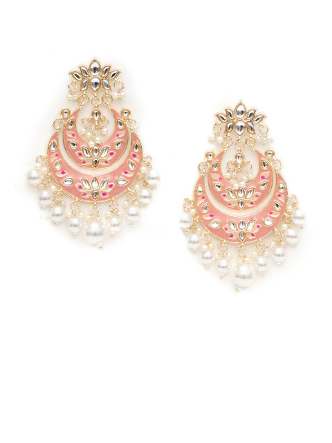 3 reviews for KARATCART Pink & White Gold-Plated Classic Chandbali Earrings