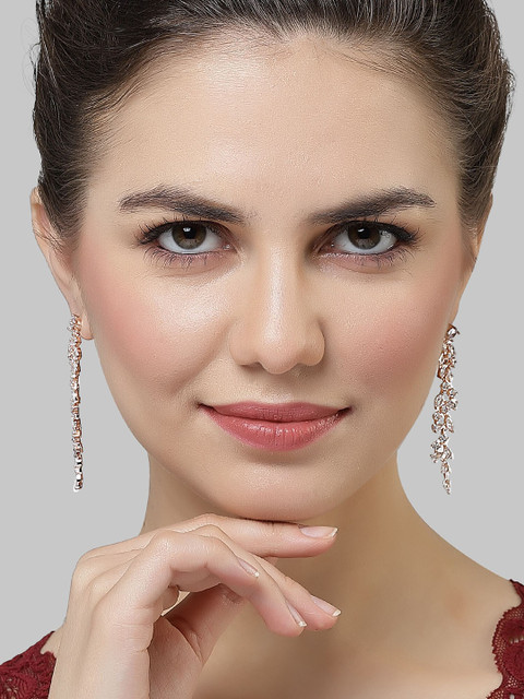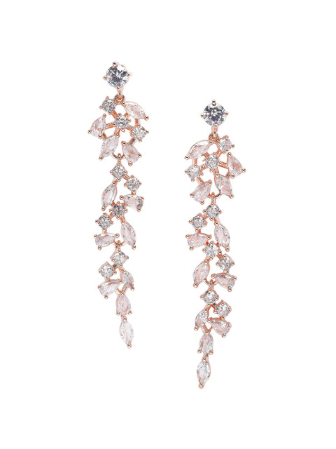 Rose gold drop earrings, rose gold-plated, has cubic zirconia