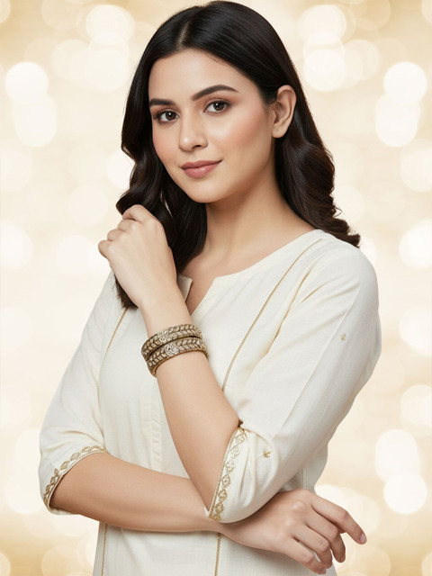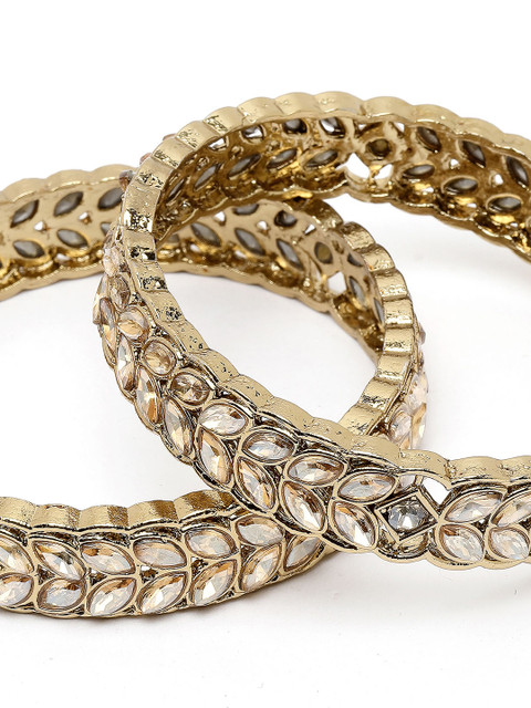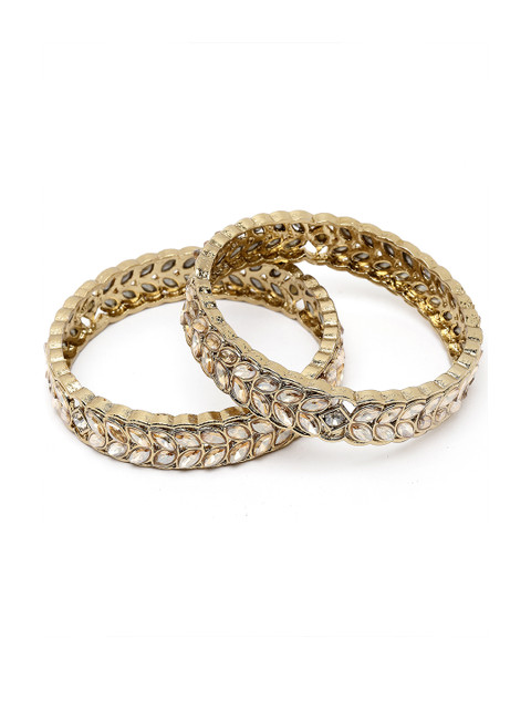 Set of two gold-plated bangles, each has kundan-studded details, secured with slip-on closure