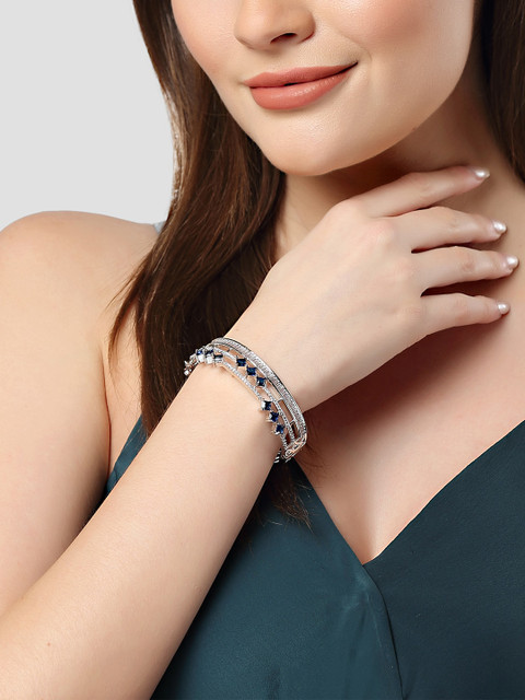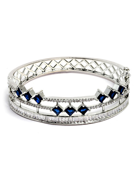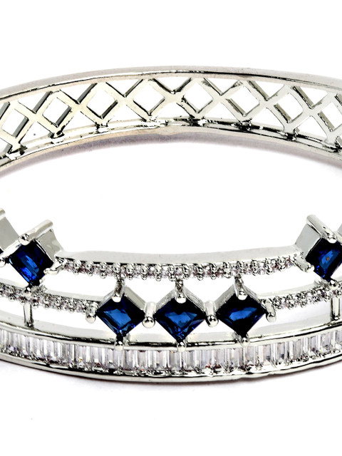 Silver-plated blue American-diamond studded bangles