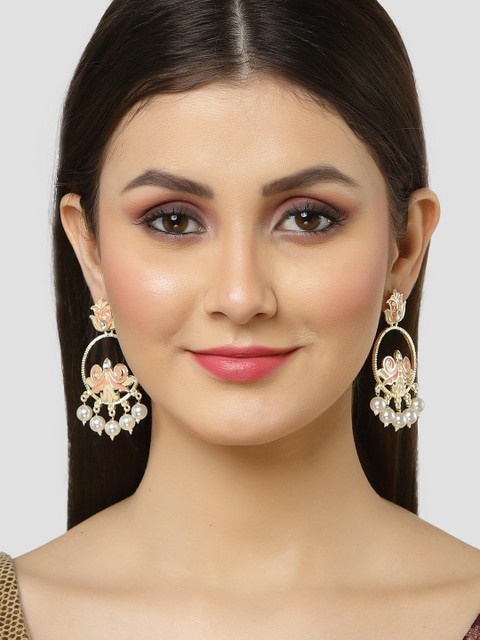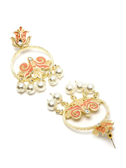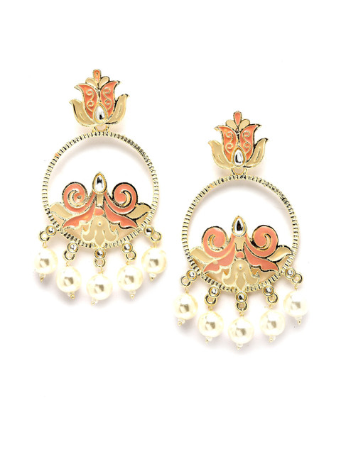 KARATCART women Gold Plated Peach-Coloured Circular Drop Earrings