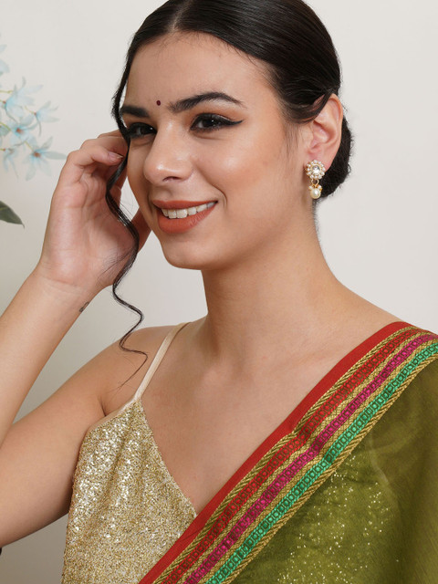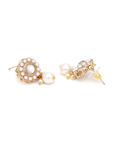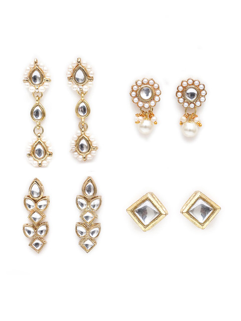 Set of 4 White & Gold classic studs,Drop Earings gold-plated, has kundan