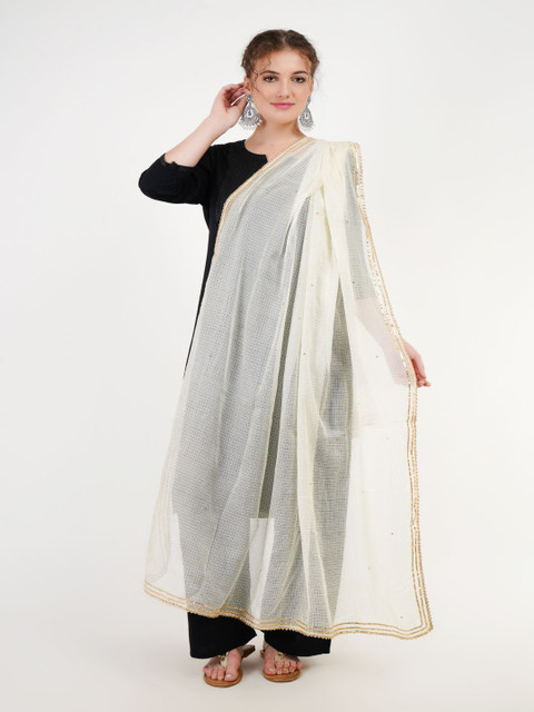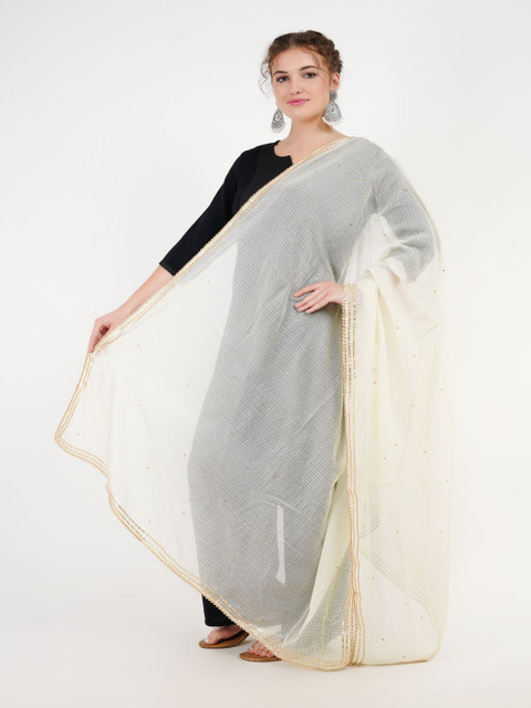Karthav Fashion Floral Embellished Stones Work Cotton Kota Dupatta