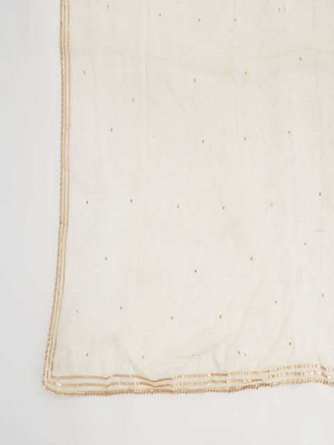 White and gold-toned floral embellished dupatta, stones work, taping border