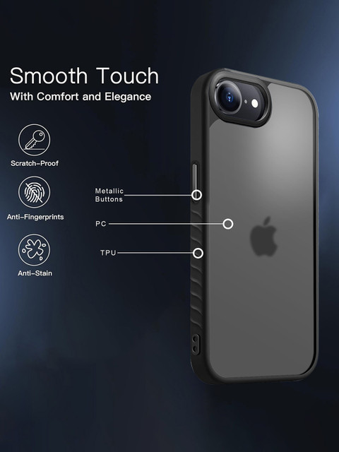 Premium Frosted Matte Finish Stylish smoky back with a subtle matte texture that adds a modern, classy touch to your phone while resisting fingerprints and smudges.
