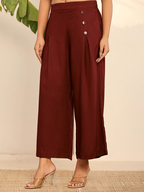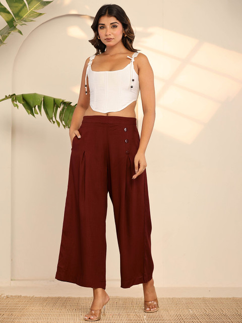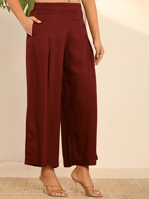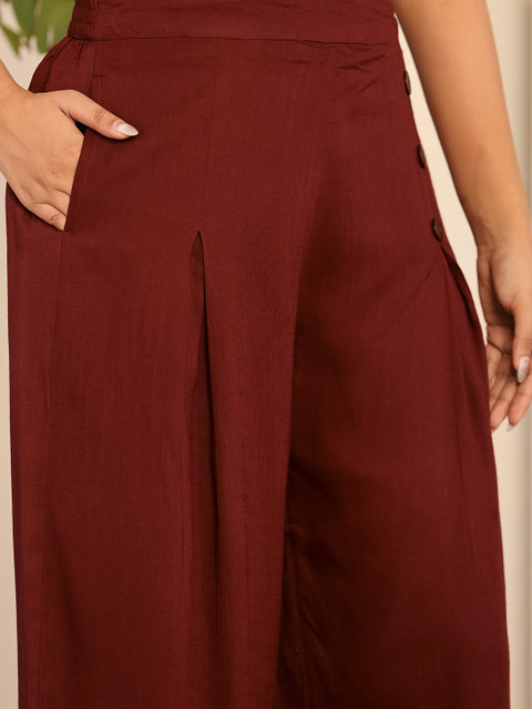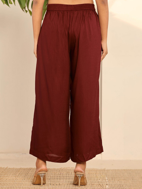 - Maroon woven palazzos